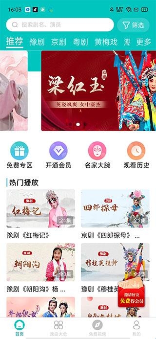 2、首页——戏曲推荐、豫剧、京剧、粤剧、黄梅戏等
