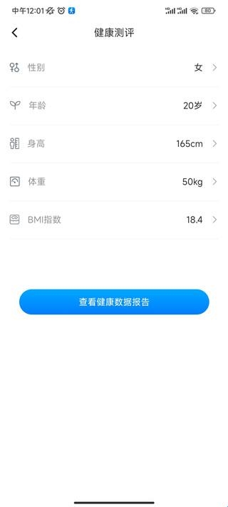 6、你还可以通过健康测评,为你记录体重、BMI指数,了解自己的身体情况;