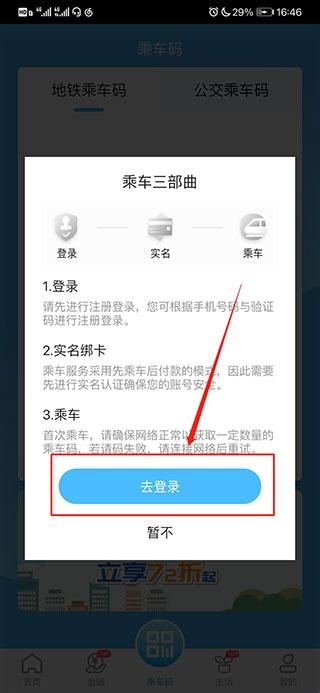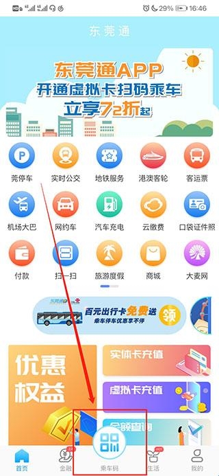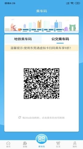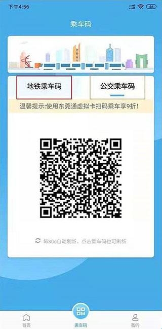 1、在本站下载并安装,然后进入app,在主页中点击下方的“乘车码”,即可进入乘车码申请页面;