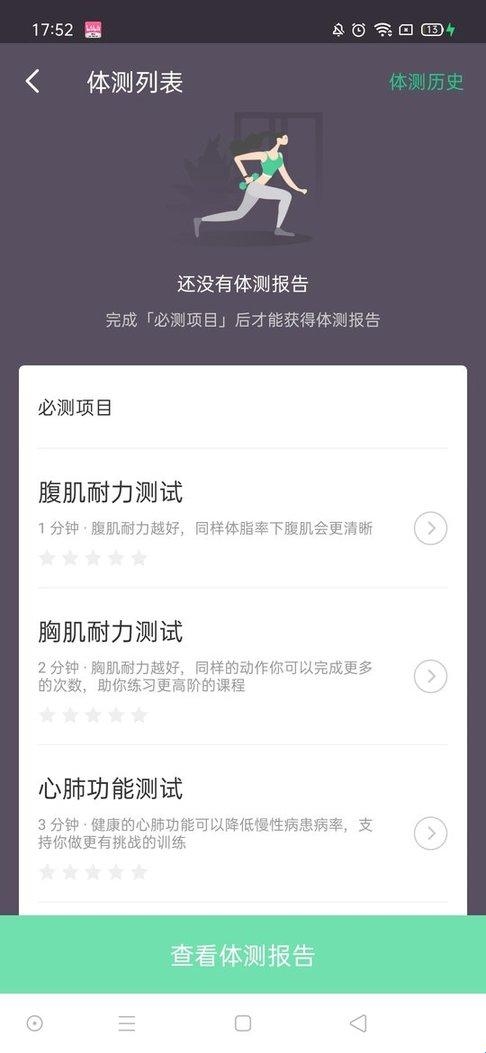 3、最后,我们只需要在【个人中心】选择【身体测试】,点击【体侧列表】下方的【查看体测报告】即可。