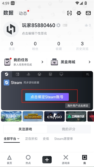 一键同步你的Steam游戏库和心愿单,还包括徽章成就、好友列表、库存装备,随时秀出你炫酷的个人游戏主页。