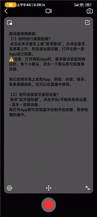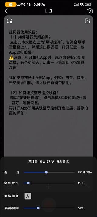用户可以使用悬浮窗进行提词,在录制视频时看到文案
