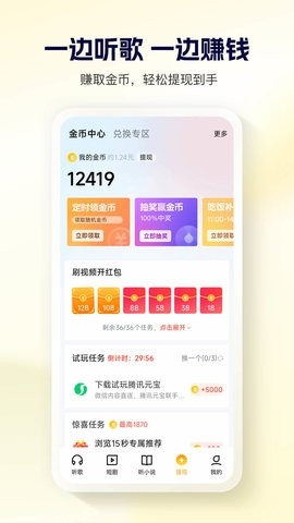 2、点击"我的"然后可看到许多的任务和金币奖励。
