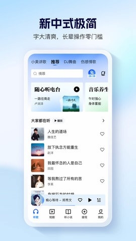 经典老歌、广场舞、红歌、民乐、戏曲、轻音乐、应有尽有,不仅为你定制,还能听歌识曲