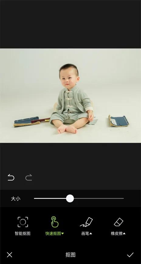 步骤3:执行上述操作后,进入“抠图”界面,点击“智能抠图”按钮,如图所示。