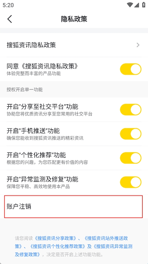 3、点击账户注销即可。