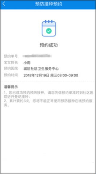 2、选择预约医院、预约时间,选择之前添加的宝宝。