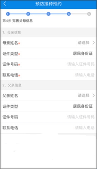 3、输入母亲姓名、证件号码、联系电话,以及父亲姓名、证件号码、联系电话,完善父母信息,注意宝宝母亲的现住地址街道需与申请医院的街道一致。