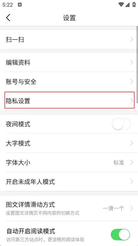 2、点击“隐私设置”;