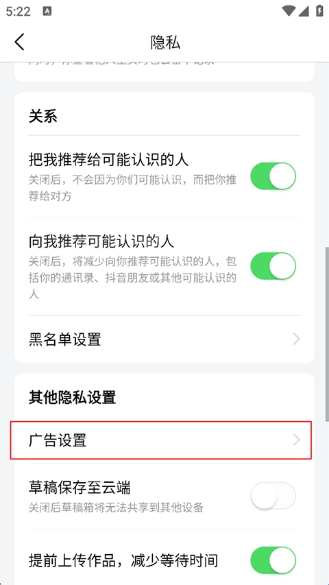 3、找到“广告设置”;