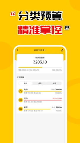 4、自定义记账本:日常开销、人情往来、旅行、装修等,根据个人消费特点自定义分类,展示详细的账目;