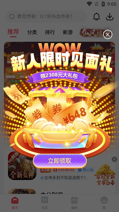 4、还有海量新人福利,下载游戏领648券