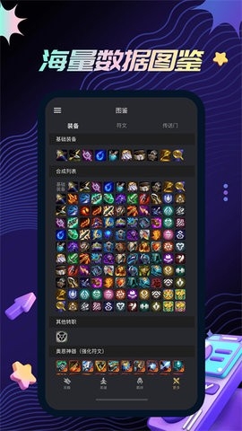 2、装备列表,合成路径和属性,英雄介绍,技能和属性;