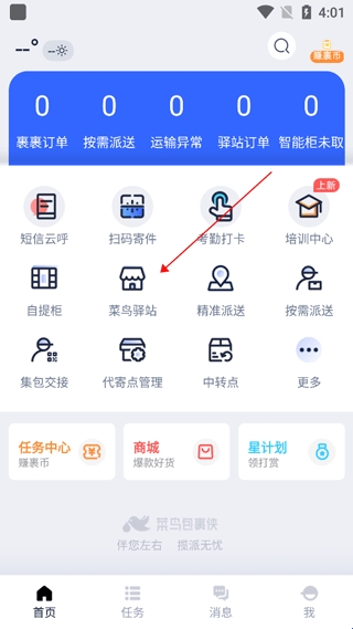 2、点击主页的“菜鸟驿站”