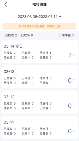 2、各位快递员可以轻松的查看每天的异常件,都可以及时查看详情。