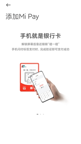 4、一触即付:使用支持近场通信技术(NFC)的小米手机,通过标记有银联“云闪付”功能的pos机完成支付交易。