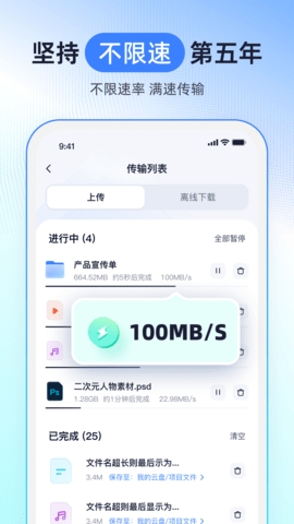 移动端、电脑端、网页端上传/下载文件均支持断点续传,注:网页端下载批量打包文件不支持断点续传。
