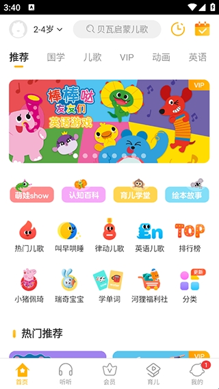 贝瓦儿歌APP是非常实用的一款早教学习软件。这里涵盖了丰富的儿歌资源、故事以及动画资源,都是免费为大家提供播放的。通过该软件各种类型的都是可以搜索到的,可以满足不同用户的学习需求。同时该软件还可以起到很好的启蒙教育作用,为家长提供了防沉迷设置,可以很好的把控时间,值得大家下载一试的哦!