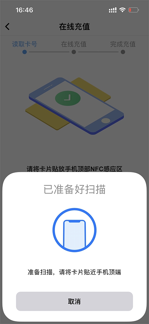 3、这个时候用户只需要将卡片贴近手机顶端即可充值成功哦。