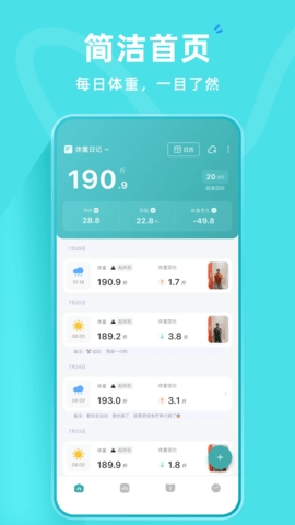 6、够帮助你记录体重变化,打造你的专属体重日记,陪伴你一起成长。