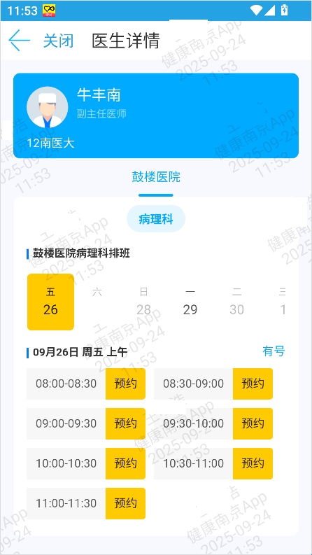 5、根据医生的排班和自身时间,选择合适的时间段完成预约。
