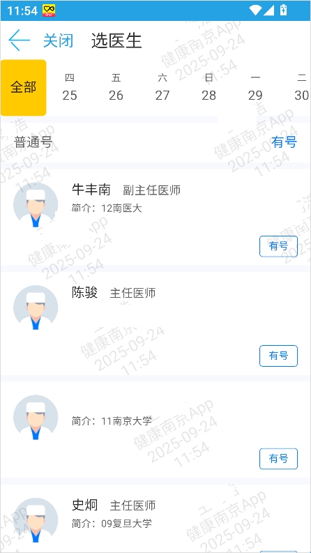 4、浏览医生列表,选择需要预约的医生。