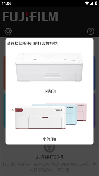 1、在本站下载安装富士打印app之后,打开并进入,就会弹出打印机选择选择,大家根据型号选择即可,同时需要注意的是我们需要确认自己手机的WI-FI功能已开启,并与打印机的WI-FI做联机,才能正常连接;