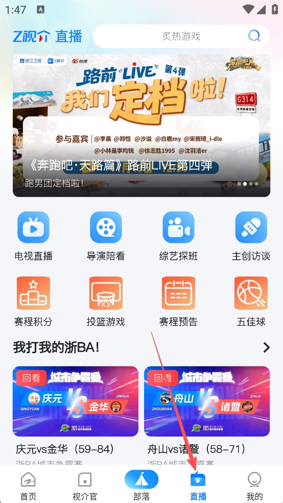 1、打开软件,点击下方的“直播”选项