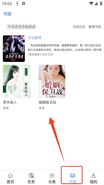 3、返回主页面点击【书架】专栏即可查看到刚才收藏的作品