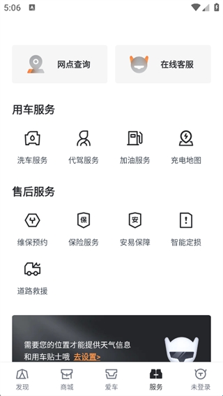 提供用车、售后两大服务板块可查询网点搭配客服24小时随时陪伴。