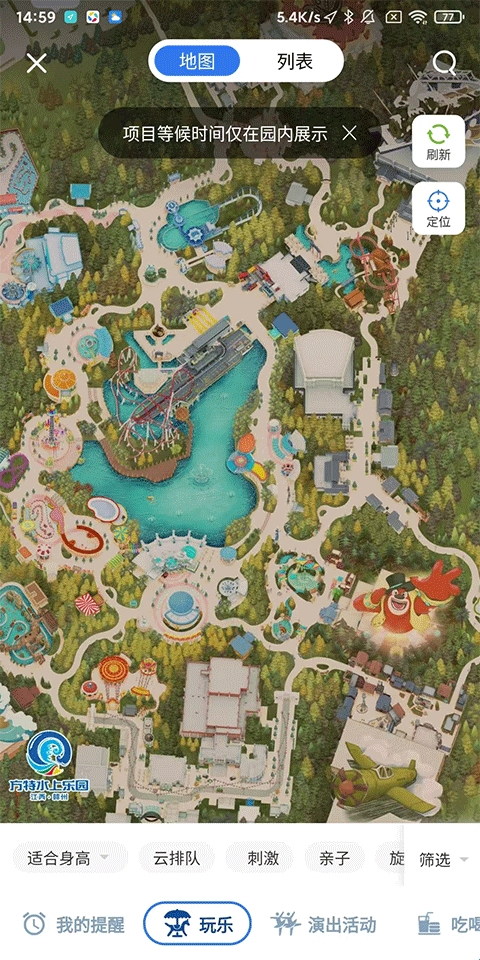 6、项目等候时间:快速查看排队等候时间,灵活安排游玩行程。