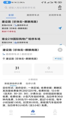 2、车主们在手机上也能查看周边车位,再也不用担心没有地方停车了。