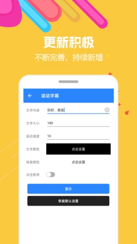 1、【滚动字幕】超实用应援打call神器,输入文字内容使文字在屏幕中滚动显示;