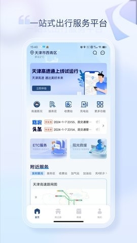 1、全面的高速出行服务:从路况到设施,天津高速通提供覆盖全路网的实时信息,确保您的出行畅通无阻。