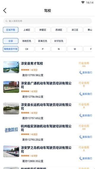 2、通过筛选区域、距离等方式查找,点击了解各驾校详情,选择合适的驾校。
