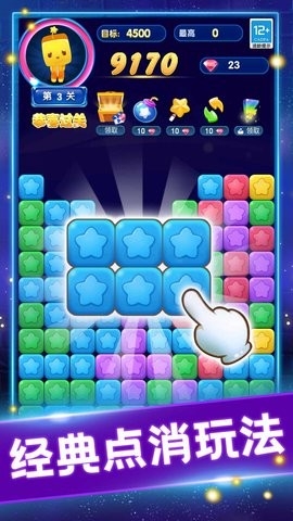 一系列的经典消除挑战,玩家自由滑动相同的星星,快速的连接,即可轻松进行消除。