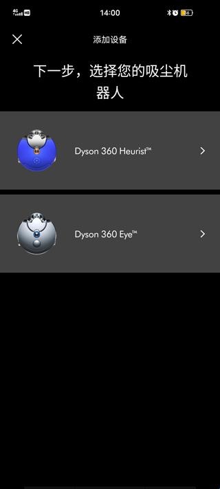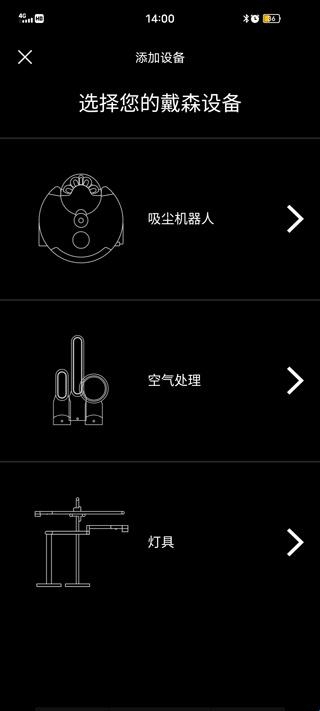 2、选择您的戴森设备,可选吸尘机器人、空气处理、灯具;