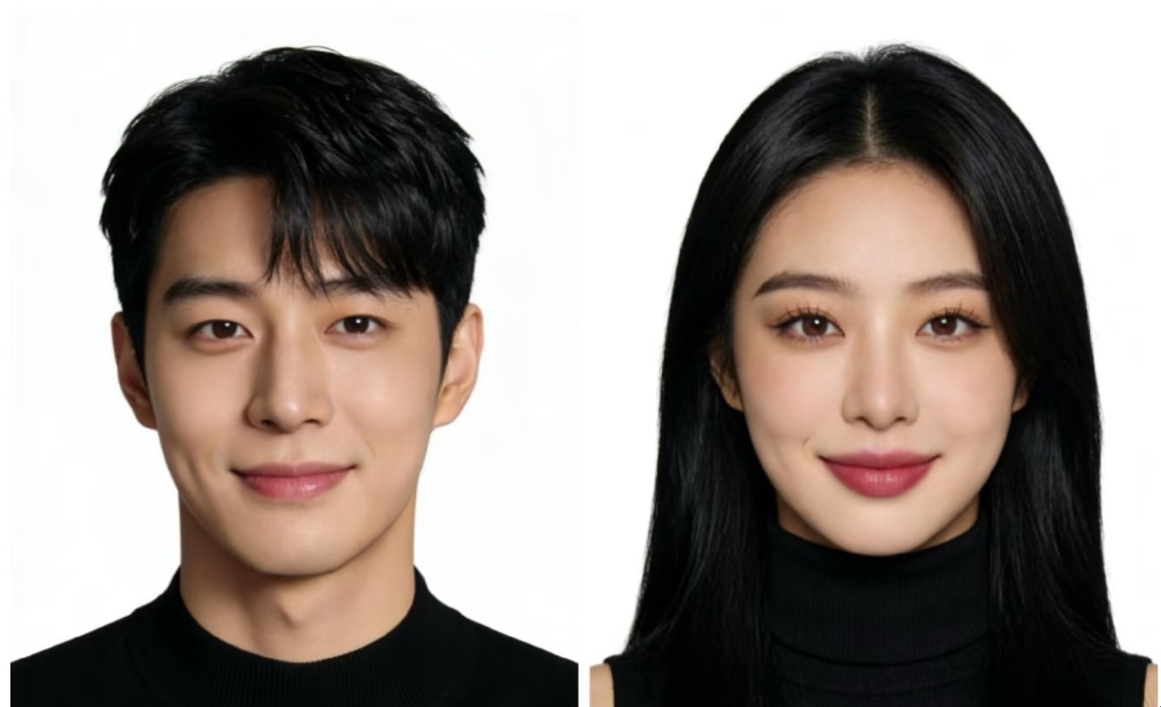 身材比例:男性身高约180cm,身形挺拔;女性身形修长。双人同框时,男性明显高于女性(15-20cm),比例自然。